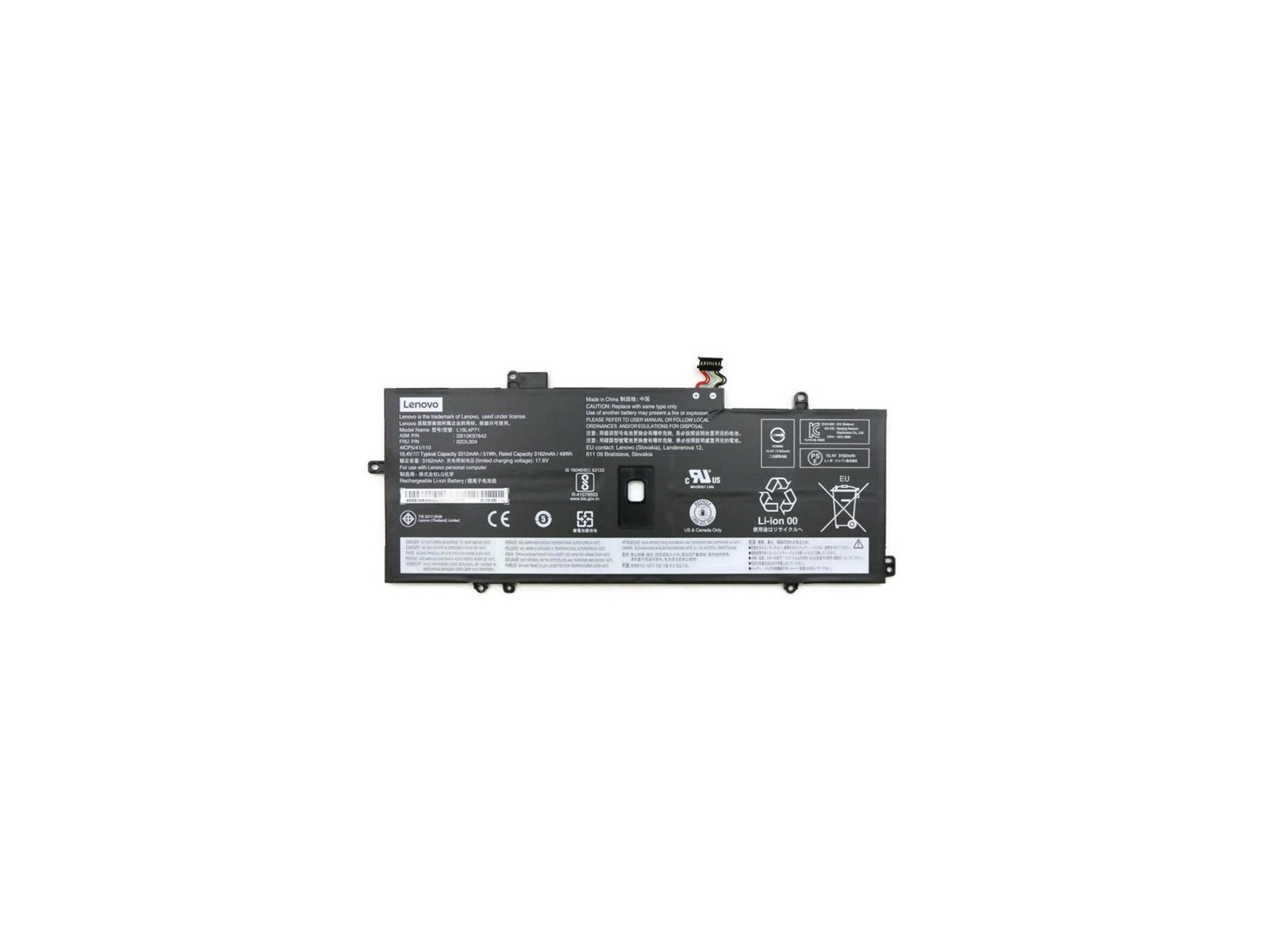 02DL005 Lenovo Lithium-ion Batteria 51Wh capacity 4-cell design compatible with Lenovo ThinkPad X1 series laptops. FRU02DL005
