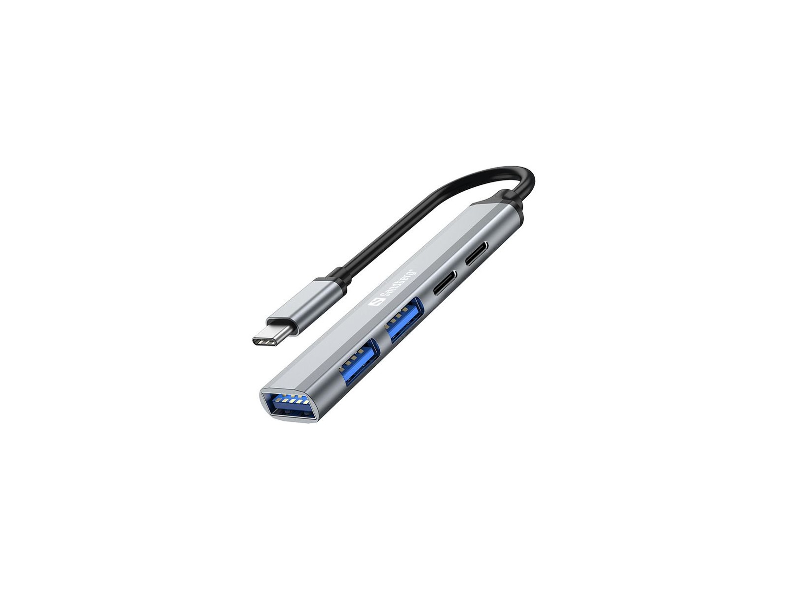 336-50 Sandberg USB-C to 3xUSB-A2xUSB-C SAVER Round cable USB-C to 3xUSB-A2xUSB-C SAVERL’hub Sandberg USB-C to 3xUSB-A 2xUSB-C Hub SAVER offre molte opzioni per collegare dispositivi extra collegabili tramite USB al tuo computer. Ad esempio, è possibile collegare chiavetta USB, stampante e mouse esterni contemporaneamente. La porta USB-C PD65W consente di caricare la maggior parte dei laptop alimentati con USB-C tramite l’hub. Basta connetterlo a una porta USB e funzionerà immediatamente senza dover installare i driver.