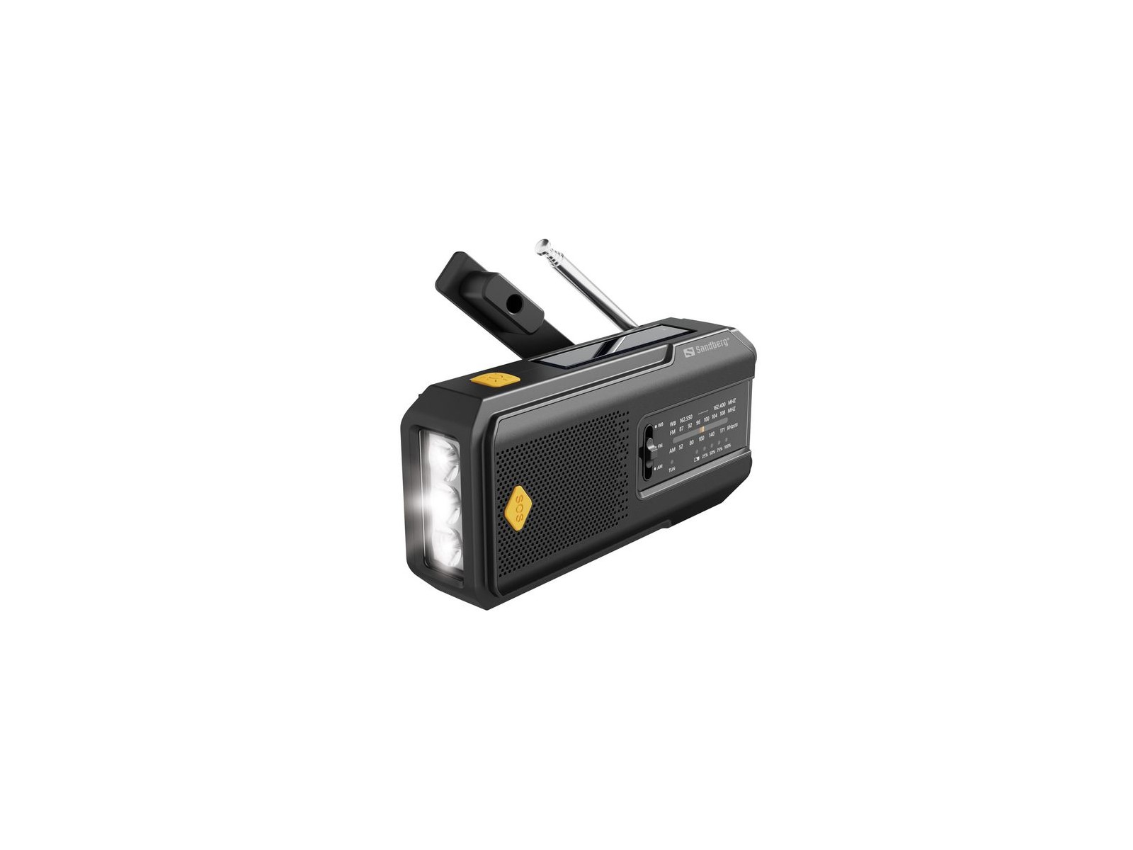 Sandberg Survivor Radio All-in-1 2000 è un dispositivo compatto e affidabile ricco di tante funzionalità intelligenti, tutte utili quando sei nella natura o in una situazione di emergenza. Offre una power bank per ricaricare il tuo smartphone, un altoparlante , una radio che riceve frequenze AM e FM e anche una luce che puoi usare come torcia o come luce di lettura. Puoi caricare il dispositivo con una sorgente di alimentazione USB standard, ma se non hai una fonte di energia elettrica a portata di mano, puoi usare il pannello solare incorporato e la manovella per effettuare una ricarica di emergenza.