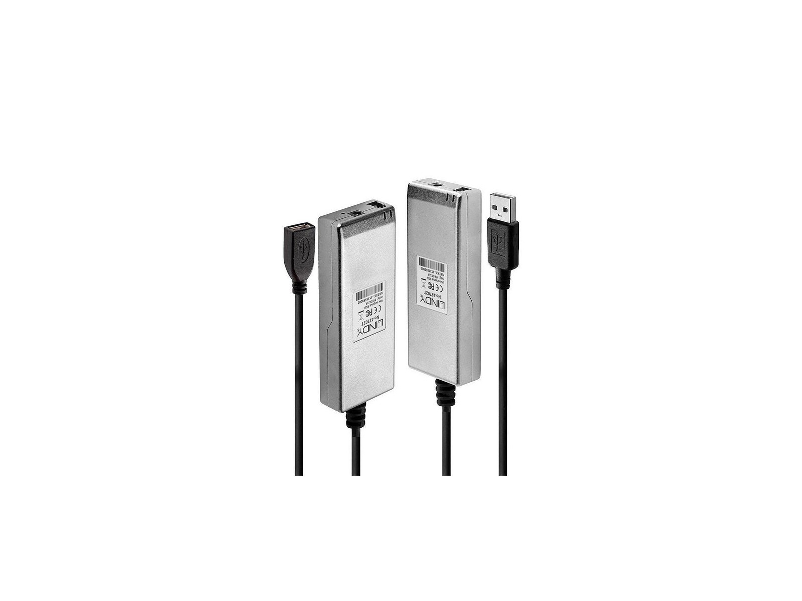 42702 Lindy 200m Fibre Optic USB 2.0 Extender 800025 200m Fibre Optic USB 2.0 Extender The Lindy 200m Fibre Optic USB 2.0 Extender supports far longer distances than standard copper cables. It is a compact two part hardware solution comprising of a transmitter dongle that connects directly to your computer and receiver dongle that connects to the USB peripheral. These are then joined together using LC Multimode Simplex Fibre.The small form factor of the Extender allows for an easy and discreet installation while the use of fibre helps rule out the possibility of electrical interference in the extended signal. Ideal for remote desktop links, industrial control, surveillance and external storage applications the extender gives long distance access to USB keyboards and mice, printers, scanners, webcams, audio devices, disc burners, external drive storage and much more. Connecting a USB hub to the receiver also gives additional access to a larger number of USB devices. For added convenience the Fibre Optic USB 2.0 Extender is supplied with a power supply, which can be connected should additional power be required.