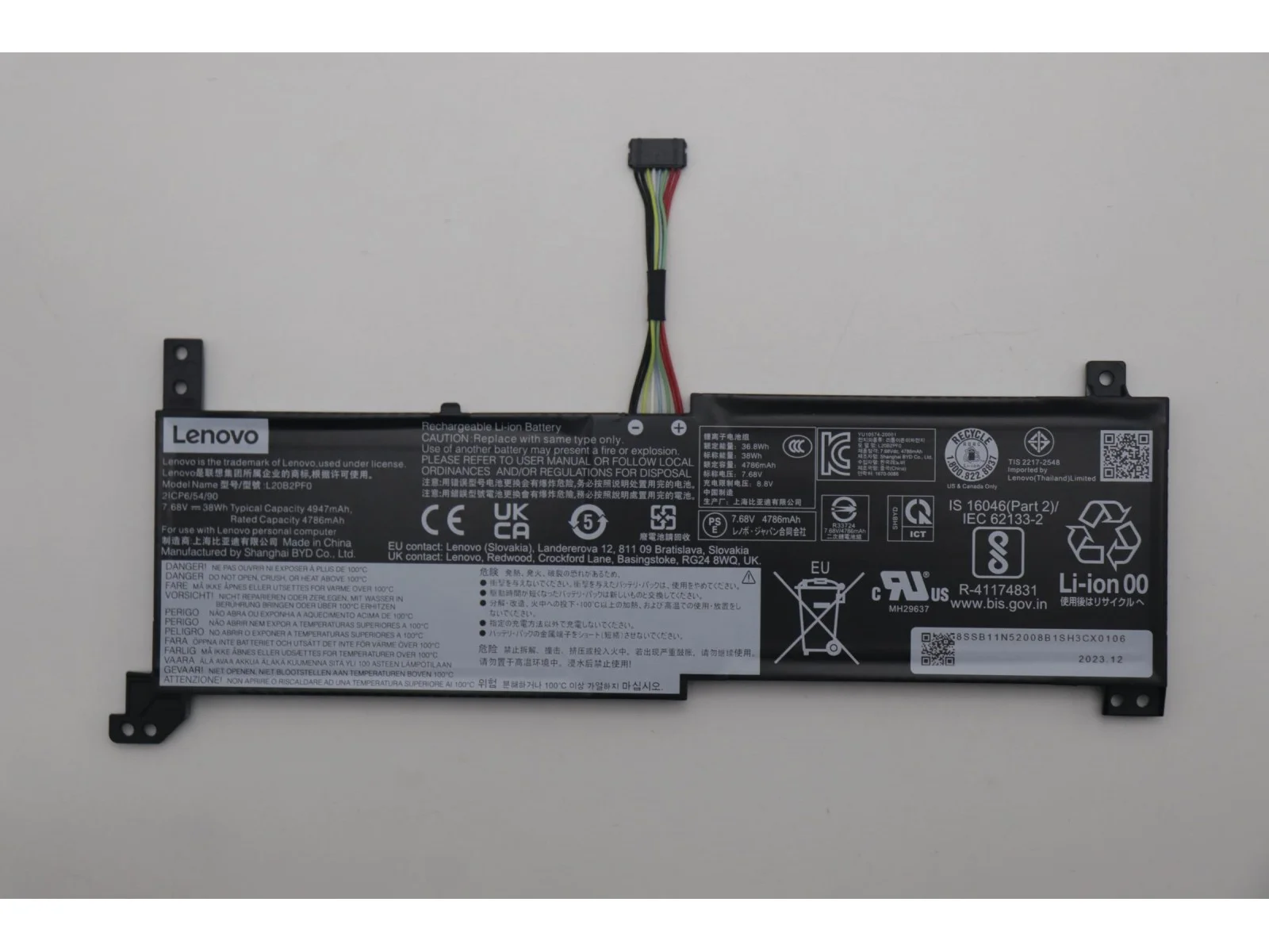 5B11B36280 Lenovo Battery for Lenovo devices, 38Wh capacity, 7.68V voltage, 2-cell design, ensuring reliable power supply. FRU5B10W51825 38 Wh Battery for Lenovo devices, 38Wh capacity, 7.68V voltage, 2-cell design, ensuring reliable power supply. Ensure your Lenovo device remains powered effortlessly with the high-performance 38Wh Battery. Engineered to deliver a stable voltage of 7.68V, this robust battery consists of two cells, ensuring optimal energy output for your device. Its reliable design not only enhances device performance but also ensures you stay productive throughout your workday. Specifically crafted for compatibility with various Lenovo models, this battery promises seamless integration and peace of mind for users. Lenovo's reputation for cutting-edge technology guarantees durability and long-lasting power. Available through a trusted name in IT distribution, you benefit from reliable inventory, expert support, and assurance of authentic Lenovo products, making sure your investment in technology goes the distance.