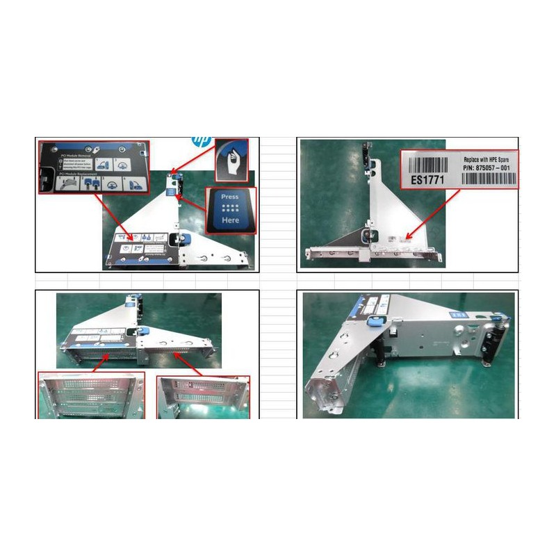 875057-001-RFB Hewlett Packard Enterprise Riser cage for data centers, 2U form factor, supports x16 PCIe slots, dimensions 27.5x