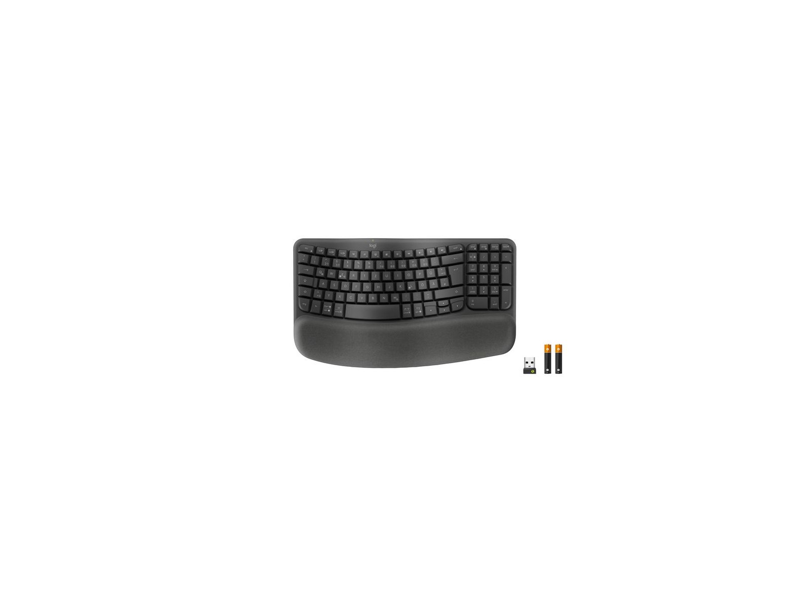 920-012327 ​Logitech ​Wave ​Keys ​wireless ​ergonomic ​keyboard ​with ​a ​cushioned ​palm ​rest ​ALKALINE ​- ​Alkaline ​Batteries ​- ​No ​resticti