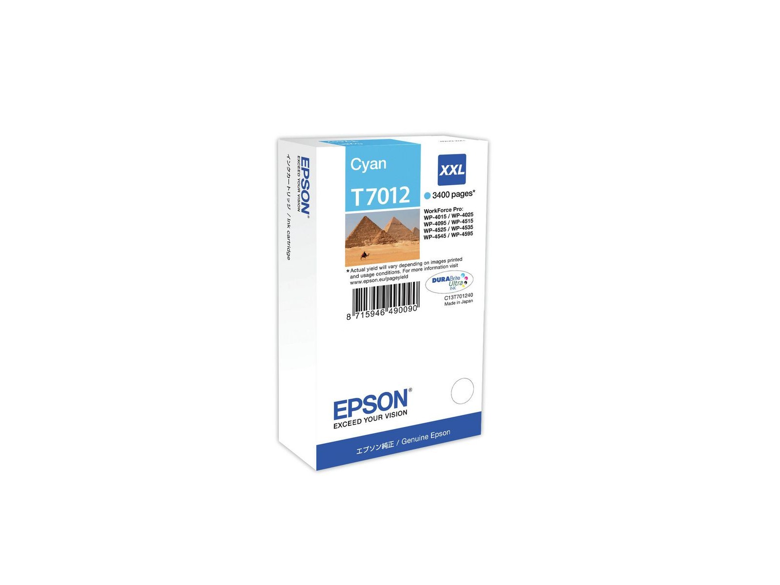 C13T70124010 Epson Ink Cartridge XXL Cyan 3.4k 2109944 Epson Epson WorkForce Pro WP5000, WP4595DNF, WP4535, WP4525DNF, WP4515DN, WP4095DN, WP4015DN, WP4000