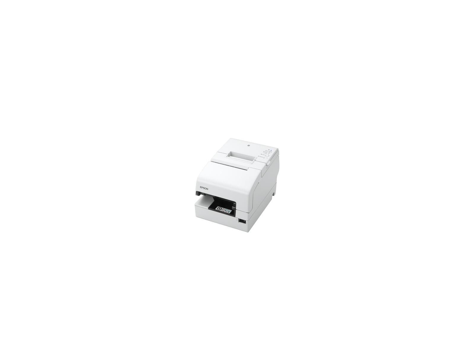 C31CG62213P1 Epson 350 mm/sec, 180 x 180 DPI, USB 2.0, RS-232, Ethernet, White White 350 mm/sec, 180 x 180 DPI, USB 2.0, RS-232, Ethernet, White This Item: 350 mm/sec, 180 x 180 DPI, USB 2.0, RS-232, Ethernet, White ____________________________________________ Offering receipt printing, slip printing and cheque processing in one unit, this integrated POS printer offers a range of features and low TCO This integrated point-of-sale printer is capable of receipt printing, slip printing and cheque processing in one unit. It's reliable, provides useful connectivity features and offers a very low total cost of ownership. It's ideal for businesses requiring cheque-processing facilities at point of sale, and print receipts with the same unit. More productivity Ideal for busy environments, the TM-H6000V offers a selection of features that help businesses boost overall efficiency. It prints at speeds up to 350mm/s¹, offers fast cheque processing and a swift auto-cutter. Reliable and efficient In fast paced environments, it's essential to minimise downtime. The TM-H6000V is a dependable solution with the thermal printer now effective for 200km of receipts, while its auto-cutter is capable of three million cuts. Range of connectivity features The TM-H6000V is designed to handle all types of POS solutions with ease. It's flexible enough to adapt to the demands of modern retail environments including Server Direct Print (SDP) to print and display data from external servers, as well as multiple interfaces for tablet and PC coexistence. Stay tuned with the trends in the POS Market Looking for a future-proof printer that's simple and quick to set-up? ePOS-Print, ePOS-display and NFC tagging make it possible to incorporate new functionalities at the Point of Sale and allow quick tablet POS set-up.