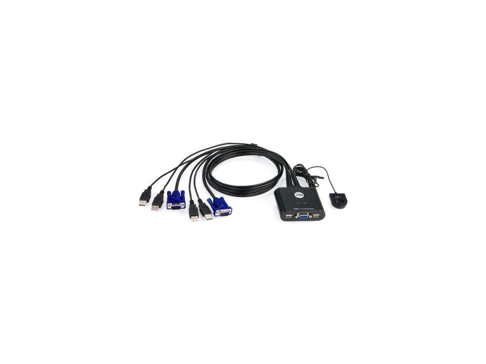 CS22U-AT Aten 2-Port USB VGA KVM Switch CS22U-A7, CS22U-AT, 784058 Plastic 2-Port USB VGA KVM Switch The CS22U is a 2-port USB Cable KVM Switch that provides a simple and quick method of selecting computers- a built-in remote port selector. This allows the CS22U unit to be hidden from sight, while the remote port selector can be placed conveniently on the desktop. 1x CS22U 2-Port USB Cable KVM Switch with Remote Port Selector 1x User Instructions