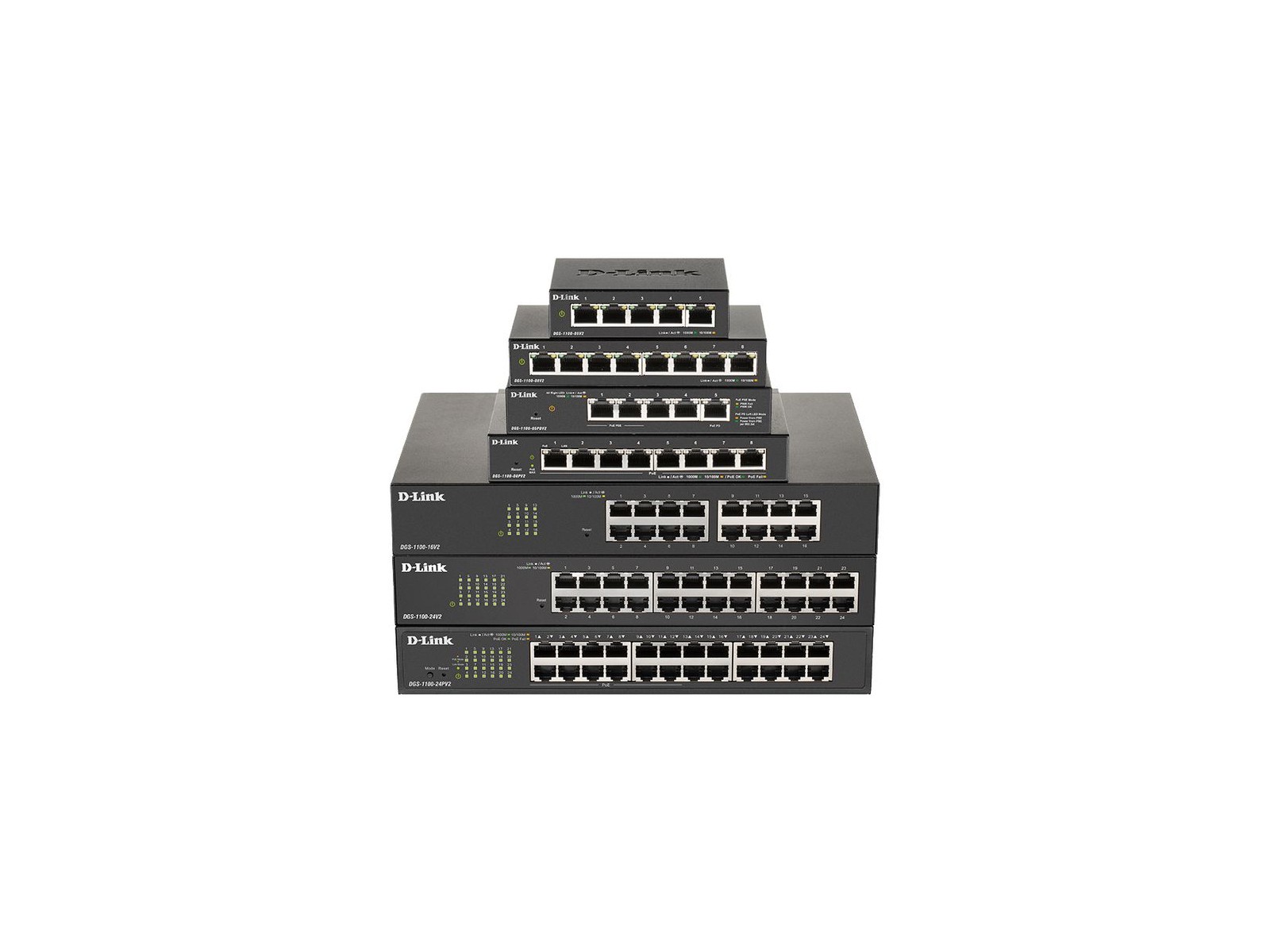 DGS-1100-08V2/E ​D-Link ​8 ​x ​10/100/1000 ​Mbps ​RJ-45, ​16 ​Gbps, ​11.9 ​Mpps, ​4K ​MAC, ​145 ​x ​82 ​x ​28 ​mm ​11,9 ​Mpps