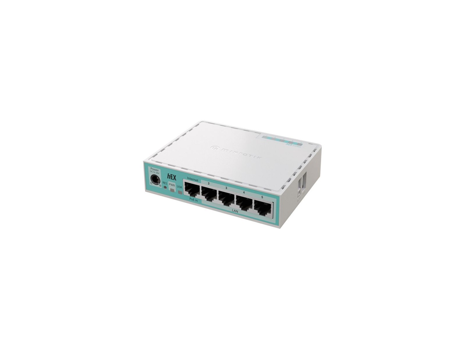 E50UG MikroTik hEX refresh White hEX refresh The affordable, reliable router you know and trust is now stronger than ever. With the latest refresh, the hEX delivers twice the performance for the same great price. Whether you’re looking for a rock-solid solution for your home or small office, hEX ensures seamless and stable connectivity with a powerful upgrade: we’ve increased the RAM from 256 MB to 512 MB, and replaced the CPU with a modern ARM dual-core workhorse! Depending on your configuration, the performance increase can reach 100-134%! With 5x Gigabit Ethernet ports, hEX is the most cost-effective way to interconnect your main home or office devices. And you can use the full-sized USB port to add extra storage to stream high-quality media across devices!
