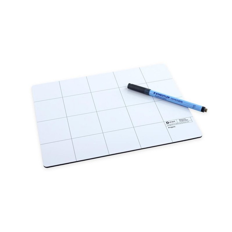 EU145167-4 iFixit Pro Magnetic Project Mat Pro Magnetic Project Mat Repair can be tough. This mat makes it easier. - Simply organizes all your parts while you work on a device. - Dry erase surface lets you keep notes and stops mistakes. - Reduces reassembly time by up to 40% while preventing errors. Designed by fixers, for fixers, the 8”x10” Magnetic Project Mat solves this repair problem. Spacious and secure, the mat will catch and hold screws as you pull them out of a device. Great for cell phone repairs, and you can stop worrying about screw tracking and focus on the cell phone all the screws will be right where you left them. For laptops with hundreds of screws, use the whole mat as a screw guide and keep careful notes to not get lost. The included pen is uniquely suited for the Project Mat. It’s made by Staedtler, the German pen company that makes top-of-the-line pens and pencils for artists and architects. Their Lumocolor Correctable pen doesn’t smear or wipe away like most dry erase markers, so if you brush your hand across the mat while performing a repair, the ink doesn’t scratch or smear. However, the eraser tip or a dry cloth wipes the ink away clean.