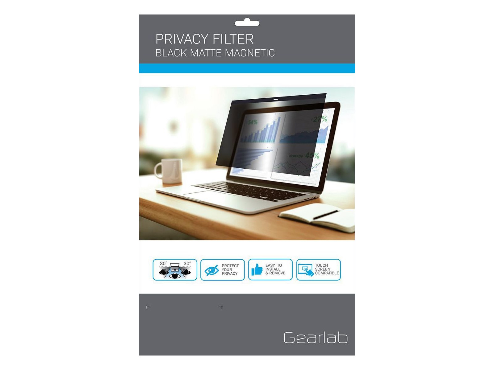 Filtro privacy magnetico 13,3" 16:10 (scatola Gearlab) Realizzato per laptop con cornici ma senza cornici metalliche integrate. Strisce adesive magnetiche incluse per la cornice superiore del display rendendo l'attacco molto semplice per l'uso quotidiano. Proteggi il tuo schermo e la tua privacy. Proteggi la tua azienda sia in movimento che in ufficio mantenendo le credenziali di accesso i dati e le informazioni personali e riservate essenziali al riparo da sguardi indesiderati. Con un filtro privacy Gearlab ottieni una nitida e chiara nitidezza delle immagini quando sei davanti allo schermo mentre le persone da entrambi i lati non possono vedere nulla sul tuo display. Come ulteriore vantaggio un filtro privacy protegge la superficie sensibile del vetro dello schermo da graffi e danni e come su un touchscreen le tue dita scivolano e scorrono facilmente sulla superficie.