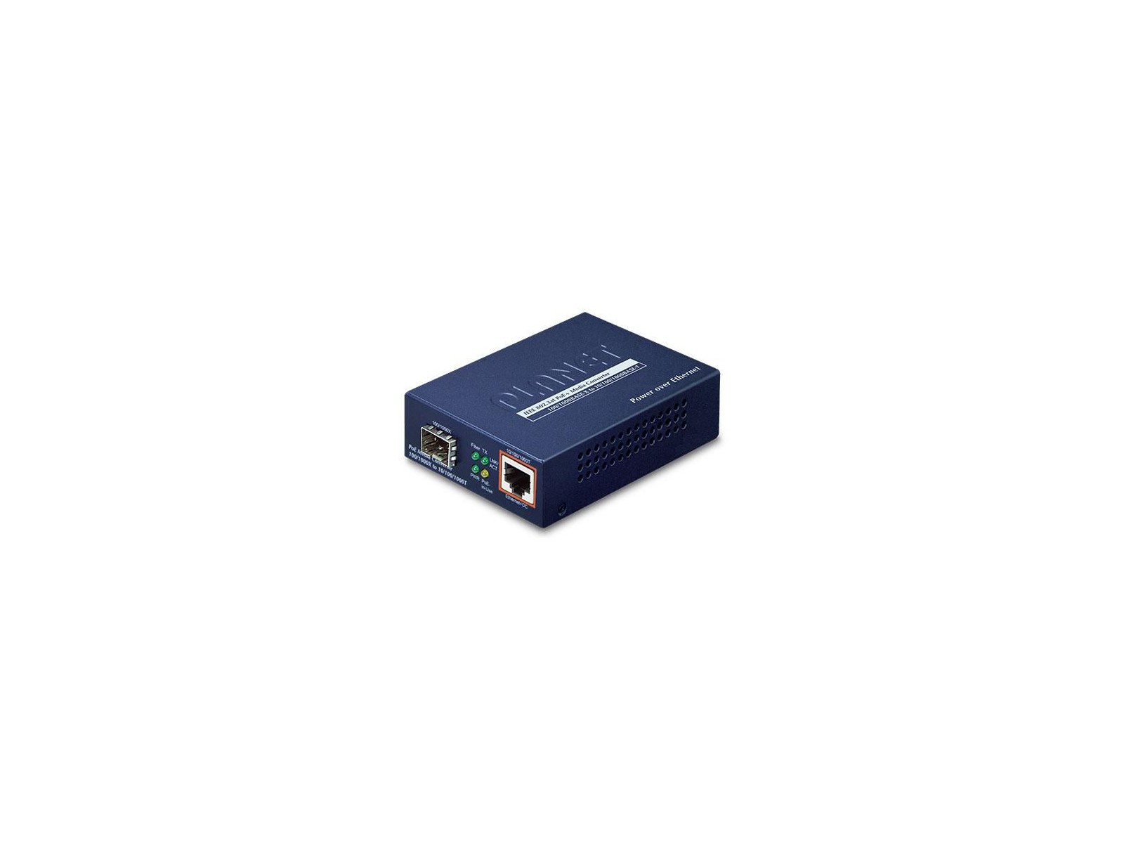 GTP-805A-UK Planet 100/1000BASE-X to 10/100/1000BASE-T PoE+ Media Converter GTP-805A FCC Part 15 Class A, CE 100/1000BASE-X to 10/100/1000BASE-T PoE+ Media Converter As more and more PoE PD devices need higher power input and long-distance transmission, PLANET has released a new Power over Ethernet Media Converter, GTP-80x series. With the brand-new IEEE 802.3at High Power over Ethernet technology applied, the GTP-80x series provides the following key features: - IEEE 802.3at / IEEE 802.3af PoE standard compliance - Supports a maximum of 30W output power - 10/100/1000Mbps duplex mode supports on 1000Base-T port - 1000Mbps Fiber-Optic support The GTP-80x series is a Single-Port, Mid-Span IEEE 802.3at High Power over Ethernet converter designed specifically to satisfy the growing demand for higher power required network equipment such as PTZ (Pan, Tilt & Zoom) network cameras, PTZ speed dome, color touch-screen VoIP telephones, multi-channel (IEEE 802.11a / b / g / n) wireless LAN access points and other network devices that need higher power to function normally. The GTP-80x High Power over Ethernet converter series is an ideal solution to delivering data and power to network devices directly via the RJ-45 Port interface without the need for installing extra power outlets and electrical cabling. Fiber-Optic Link Capability Extends the Range of Network Deployment The maximum distance between the PoE PSE and PD is 100 meters. To extend the network device deployment range, the GTP-80x is integrated with Fiber interface. The GTP-80x PoE+ Media Converter is used to convert optical Ethernet signal to electrical Ethernet signal that allows two types of segments to connect easily, efficiently and inexpensively. It can convert 10/100/1000Base-T signal to 1000Base-X one and provide the diverse options of fiber connecting types to meet different network applications. The GTP-80x series and its fiber connecting type includes: - GTP-802:SC Fiber Interface with Multi-mode, Distance up to 220m and 550m - GTP-802S:SC Fiber Interface with Single-mode, Distance up to 10km - GTP-805A:LC Fiber Interface, supports Multi / Single Mode SFP module, Distance up to 120km max. (Varting on SFP module) With the long Fiber distance support, it still sustains the transmission performance as high as 1000Mbps. It works in high performance Store and Forward mechanism, and also can prevent packet loss with IEEE 802.3x Flow Control (Full-Duplex) and the LFP (Link Fault Pass through function) (LLCF/LLR) with the DIP Switch design. Furthermore, it can immediately alarm the administrators the issue from the link media and provide efficient solution to monitoring the network power usage. Quick and Easy High Power PoE Network Deployment The GTP-80x series provides 52V DC power over Ethernet cables -- just insert DC voltage into Cat.5/5e/6 cable, allowing the cable between the PoE splitters (POE-151S / POE-152S / POE-162S) to transfer data and power simultaneously for up to 100 meters. Then it will spilt the digital data and the power into two selectable DC outputs (5V DC / 12V DC). Thus, it reduces cables and the dedicated electrical outlets on the wall, ceiling or any unreachable place. Most of all, it also eliminates the time for installation. The high Power over Ethernet solution frees the security IP camera and wireless AP deployment from restrictions of power outlet locations.
