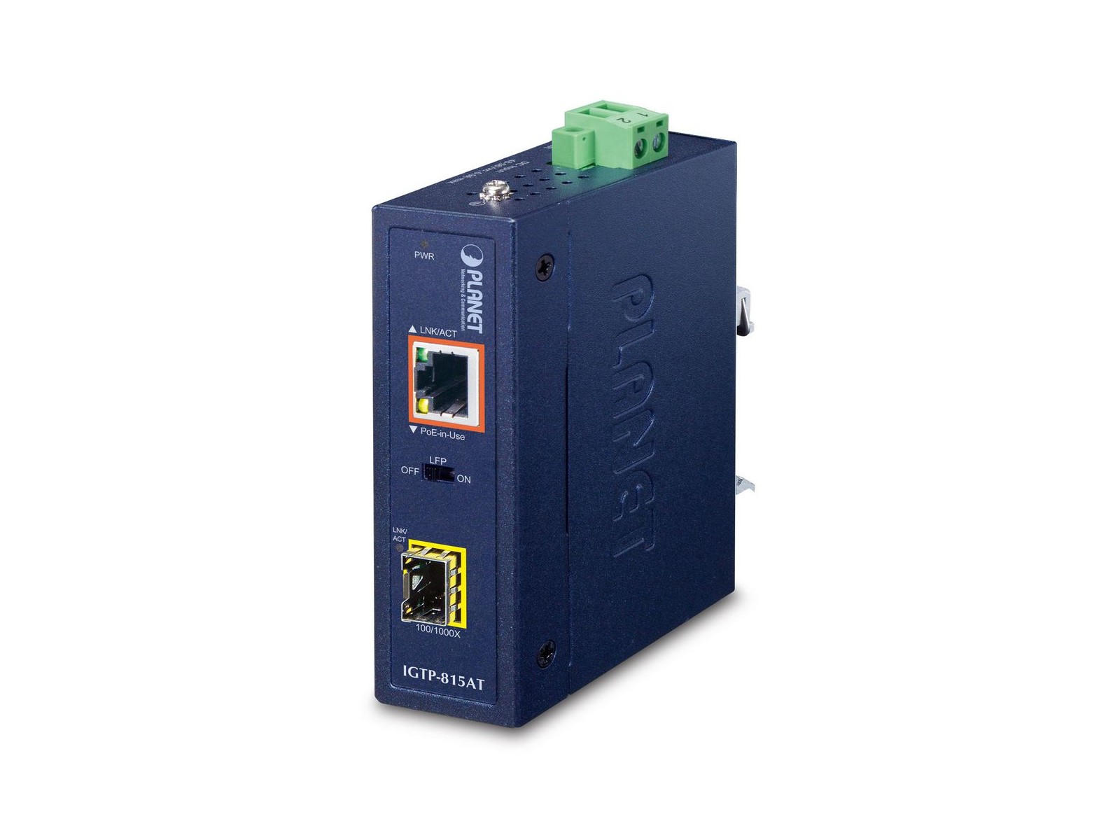 IGTP-815AT IGTP-815AT Planet Industrial Compact 100/1000BASE-X to 10/100/1000BASE-T 802.3at PoE+ Media Converter FCC 15 A, CE