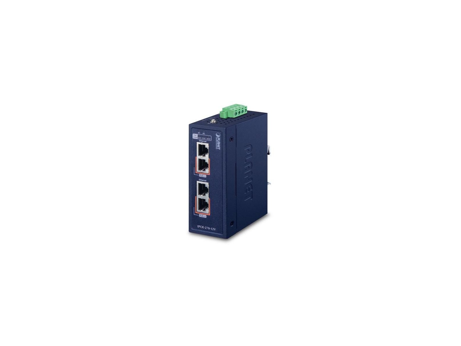 IPOE-270-12V Planet 4x 2.5G/5G RJ-45, DIN, PoE, 12V, IP30, 41x70x115 mm FCC 15 A, CE