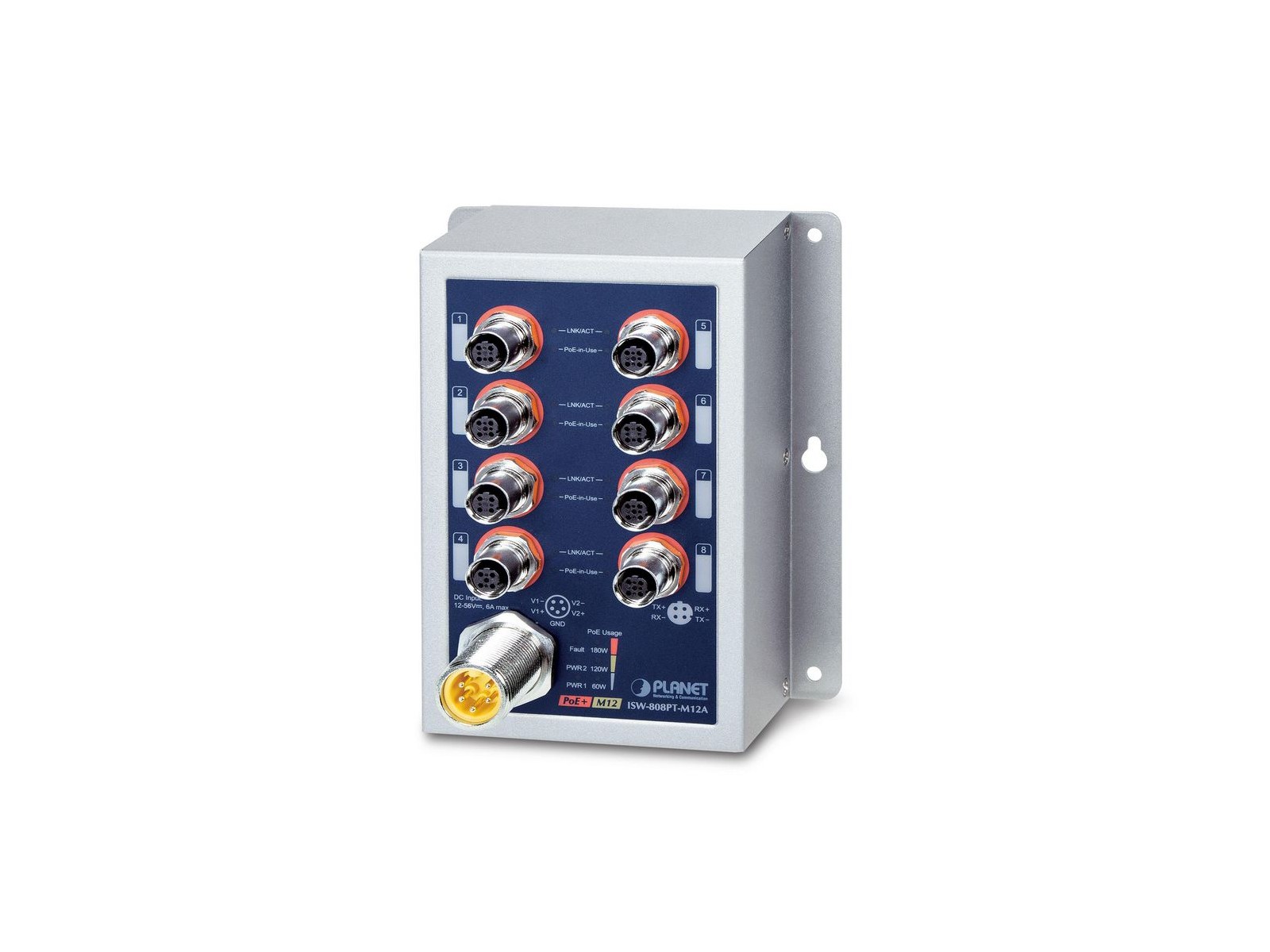 ISW-808PT-M12A Planet Industrial 8-Port 10/100TX M12 802.3at PoE+ Switch 2000 voci