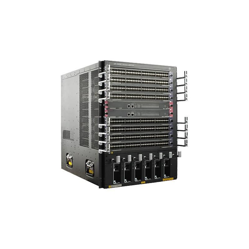 JC612A-RFB Hewlett Packard Enterprise HP 10508 Switch Chassis, 14U HP 10508 Switch Chassis, 14U The HP 10500 Switch Series is a next-generation modular enterprise campus core switch designed to enable the evolving needs of a cloud-connected and rich-media-capable infrastructure. It sets a benchmark for performance, reliability, and scalability with next-generation Clos architecture with 3-microsecond latency, delivering ultra-high 1/10/40GbE port density and is 100GbE-ready. With HP Intelligent Resilient Fabric (IRF) technology, the HP 10500 Switch Series can be virtualized across four chassis with a single management interface—enabling flatter, more agile networks. Performance, Reliability and Future-proof Scalability for The Campus The HP 10500 Switch Series provides a high speed fully distributed next generation Clos architecture with up to 11.52 Tb/s switching capacity and up to 13.72 Tb/s switching fabric capacity to meet the demands of bandwidth-intensive applications today and in the future. It is 100GbE ready with ultra-high 1/10/40GbE port density and 3-microsecond latency. With up to 12 interface module slots, the 10500 Switch Series provides up to 96 ports 40GbE, 576 10GbE ports and 576 1GbE ports and allows you to optimize deployment with a choice of 4-, 8-, and 10-slot chassis. HP Intelligent Resilient Fabric (IRF) allows up to four 10500 Switch Series chassis to be virtualized into a single switching/routing fabric that can support more than 2,300 line-rate 10 Gigabit Ethernet ports or 192 line-rate 40 Gigabit ports. The 7500/10500 Unified Wired WLAN Module integrates with the 10500 switching fabric to deliver a single unified network for wired and wireless connectivity. The 20Gbps VPN firewall module provides advanced firewall features. No hidden costs with license-free software with advanced Layer 2 and 3 feature set including IPv6, MPLS functionality, and robust QoS. Optimized Architecture For a Cloud-Connected and Media-Rich Network The HP 10500 Switch Series includes a high-speed fully distributed next-generation Clos architecture that simplifies large-scale switching architecture, reduces possible fault points, and provides greater defense capabilities. HP Comware 7, an advanced modular operating system, brings native high stability, independent process monitoring, and modular design to easily restart processes for seamless upgrades to individual software modules, enhancing serviceability and greater high-availability. Fast software upgrades without service interruptions for higher availability and zero packet loss with In-Service Software Upgrade (ISSU). Open application architecture enables fully-integrated high-performance application-specific modules. Robust Security and QoS Controls The HP 10500 Switch Series includes a robust set of security and quality of services features to build a trusted network that meets your ever-changing corporate policies and compliances. Flexible authentication options include 802.1X, MAC and Web Authentication, and Endpoint Admission Defense, providing you with greater security and policy-driven application authentication. Advanced distributed denial of service (DDOS) protection, such as DHCP Snooping, IP Source Guard, and ARP Protection, and flexible traffic controls, such as policy-based routing, QoS, and ACLs, manage end-to-end application priorities. Included with 10500 Series Switches are a powerful set of multilevel-access security controls, such as varying security management login, RADIUS, SSH, TACACS/TACACS+, to protect and control change management access. Single Management View of the Network The HP 10500 Switch Series can be seamlessly managed with HP Intelligent Management Center (IMC) to provide end-to-end network transparency with consistent network experience through comprehensive configuration, compliance and policy management. Integrated security and unified wired and wireless networks.