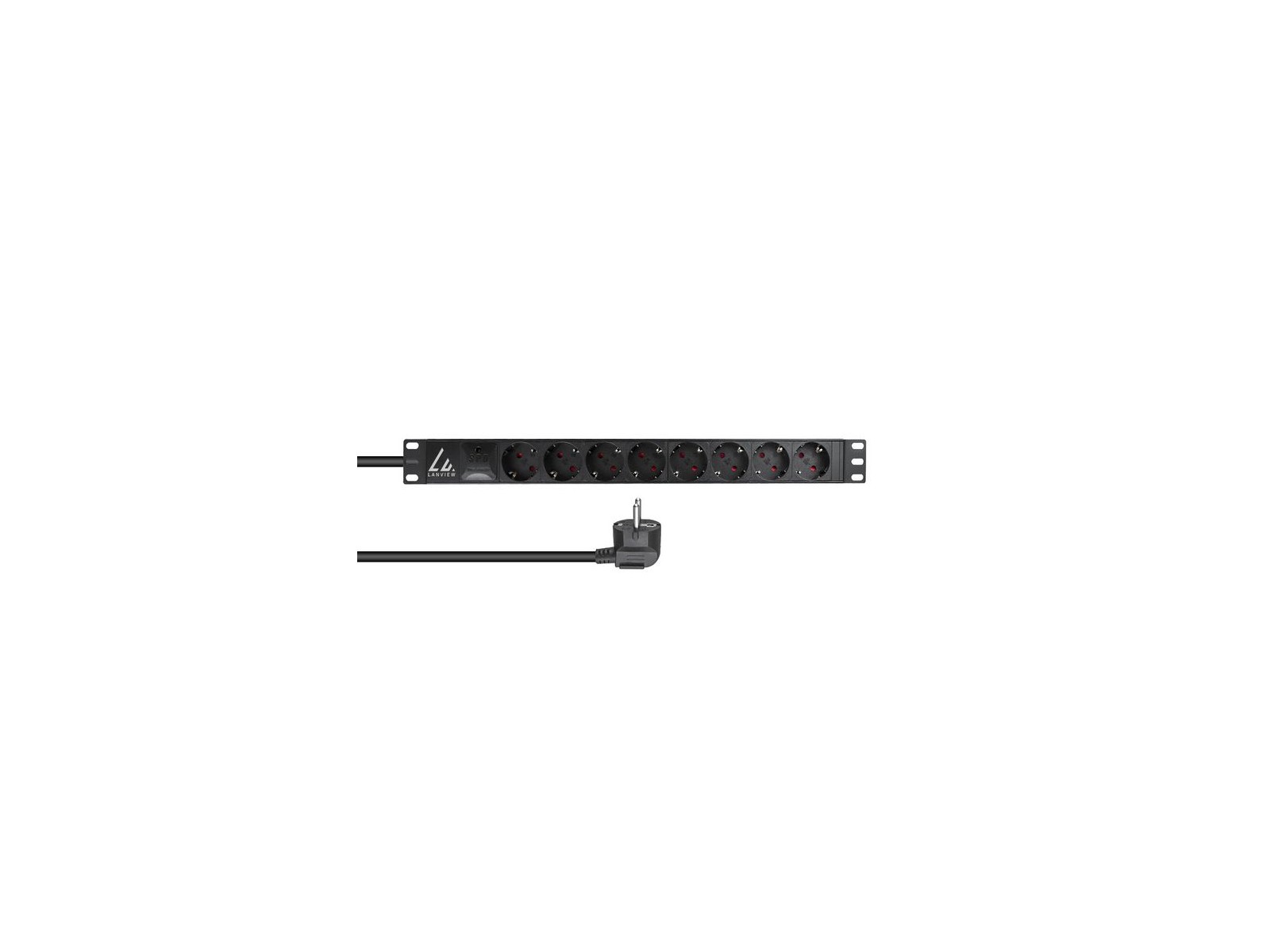 LVR-3MSCH-SPD-SCH8 Lanview 19'' rack mount power strip, 3m, 16A with 8 x Schuko F outlets Black 19'' rack mount power strip, 3m, 16A with 8 x Schuko F outlets