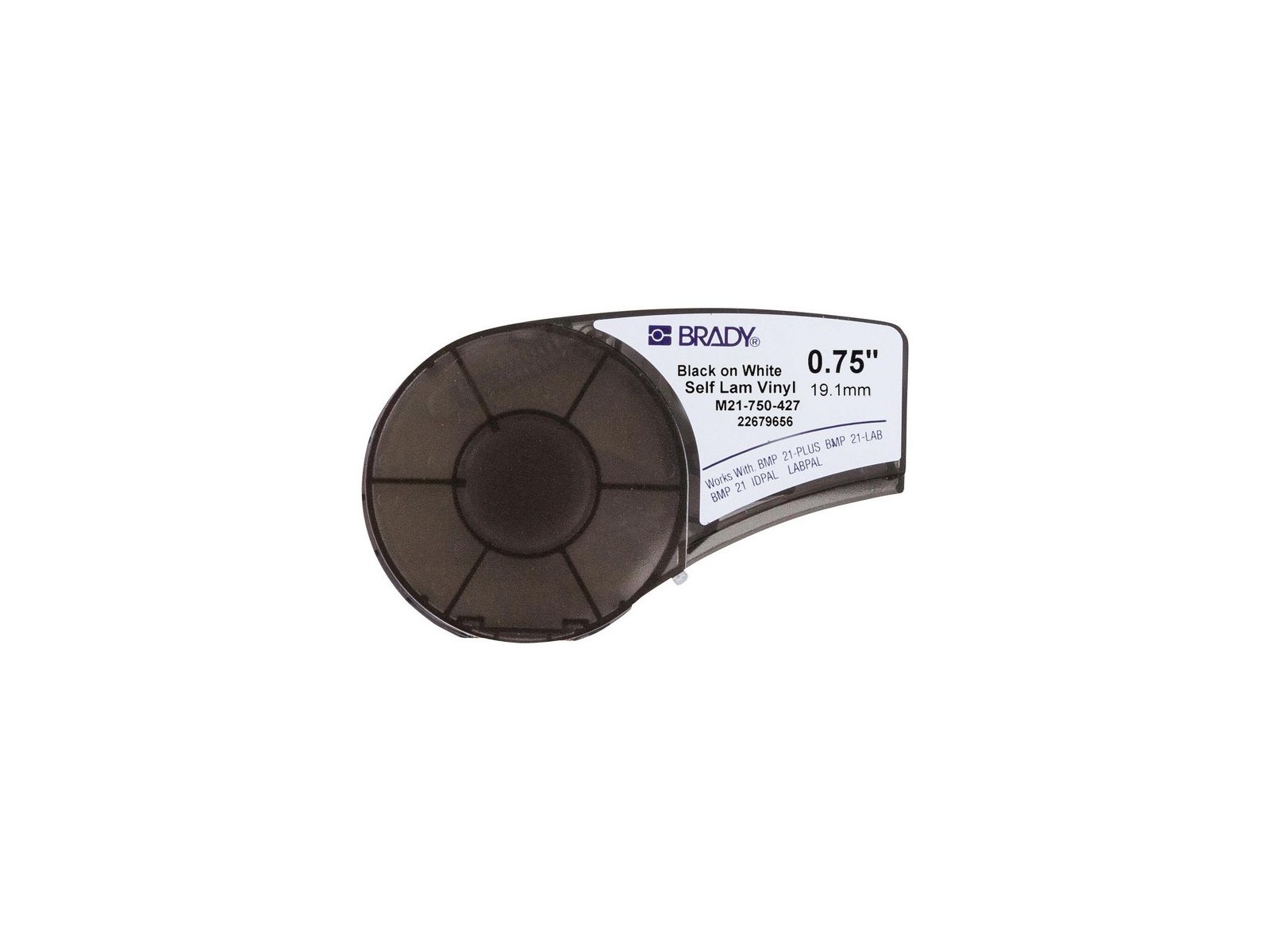 M21-750-427 Brady Self-laminating Vinyl tape for BMP21-PLUS; BMP21-LAB; BMP21; IDPAL; LABPAL 19.05 mm X 4.30 m M21-750-427, 110927 Self-laminating Vinyl tape for BMP21-PLUS; BMP21-LAB; BMP21; IDPAL; LABPAL 19.05 mm X 4.30 m Self-laminating labels. Brady Label Maker BMP21