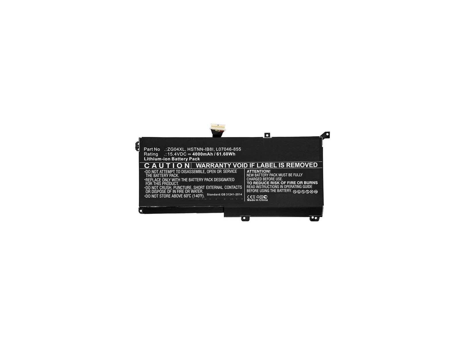 HP Product colour Black Quantity 1 Replacement for HSTNN-IB8I L07046-855 L07352-1C1 ZG04XL Type Batteria Legal Information EU ECCN Code