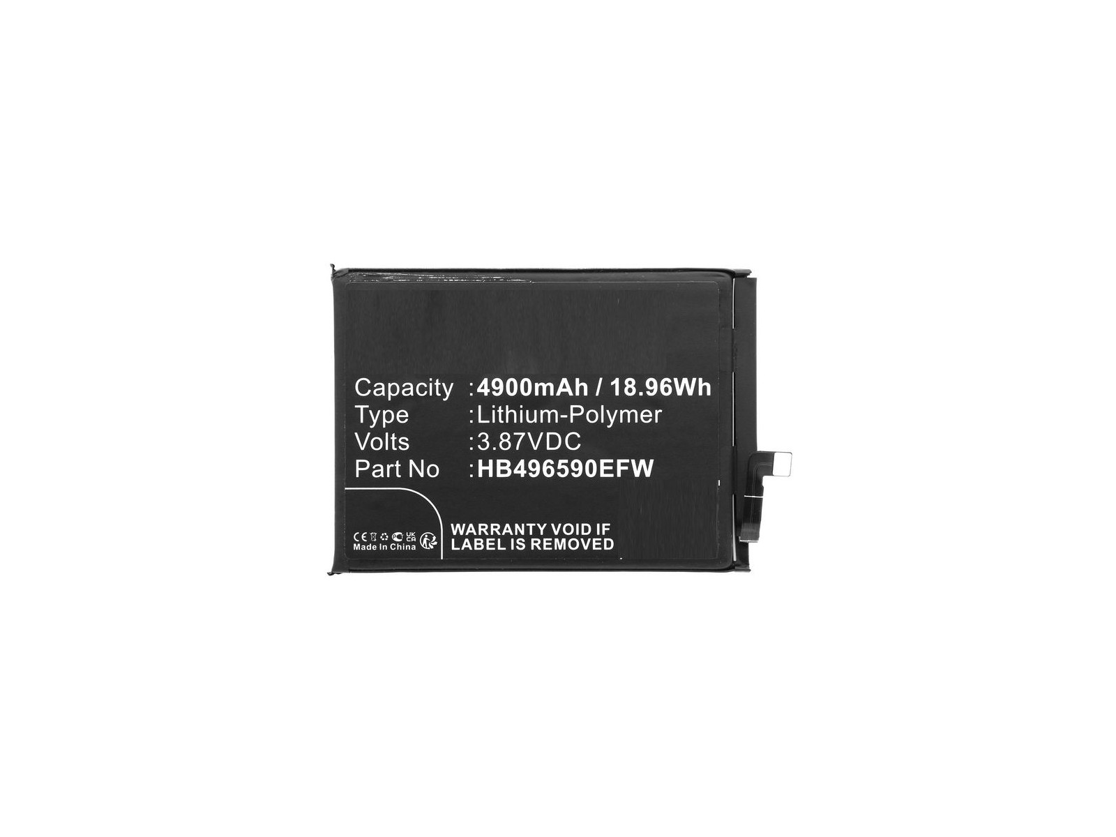 Battery for Honor Mobile 18.96Wh 3.87V 4900mAh for Play 20,Changwan 20,KOZ-AL00,X6 4G 2022,VNE-LX1,VNE-LX2,X7 2022,CMA-LX2,HONOR X7 CMA-LX1,CMA-LX3,X8 5G 2022,VNE-N41,90 Lite 5G 2023,CRT-NX1 As the demand for rechargeable batteries across various applications continues to grow in both consumer electronic devices and diverse industries, the imperative to upgrade, improve, and enhance existing devices becomes essential. CoreParts rises to this challenge by offering a versatile range of alternative batteries designed to cater to a broad spectrum of applications beyond consumer electronics. Our meticulously curated selection is crafted by high-end, certified, and trusted suppliers, ensuring that our batteries not only meet but also surpass industry standards. Recognizing the dynamic nature of applications across various industries, our commitment is to provide reliable power solutions that seamlessly integrate with the evolving landscape of electronic devices and other sectors. Elevate your device's performance across different applications with CoreParts, where innovation meets power, and customer satisfaction is our top priority. HB496590EFW, 24023623
