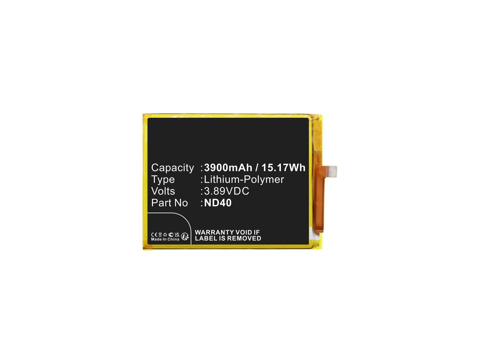 Battery for Motorola Mobile 15.17Wh 3.89V 3900mAh for Moto Edge 30,Moto Edge 30 5G,Moto Edge 30 5G 2022 As the demand for rechargeable batteries across various applications continues to grow in both consumer electronic devices and diverse industries, the imperative to upgrade, improve, and enhance existing devices becomes essential. CoreParts rises to this challenge by offering a versatile range of alternative batteries designed to cater to a broad spectrum of applications beyond consumer electronics. Our meticulously curated selection is crafted by high-end, certified, and trusted suppliers, ensuring that our batteries not only meet but also surpass industry standards. Recognizing the dynamic nature of applications across various industries, our commitment is to provide reliable power solutions that seamlessly integrate with the evolving landscape of electronic devices and other sectors. Elevate your device's performance across different applications with CoreParts, where innovation meets power, and customer satisfaction is our top priority. ND40, SB18D34507, XT2203, XT2203-1