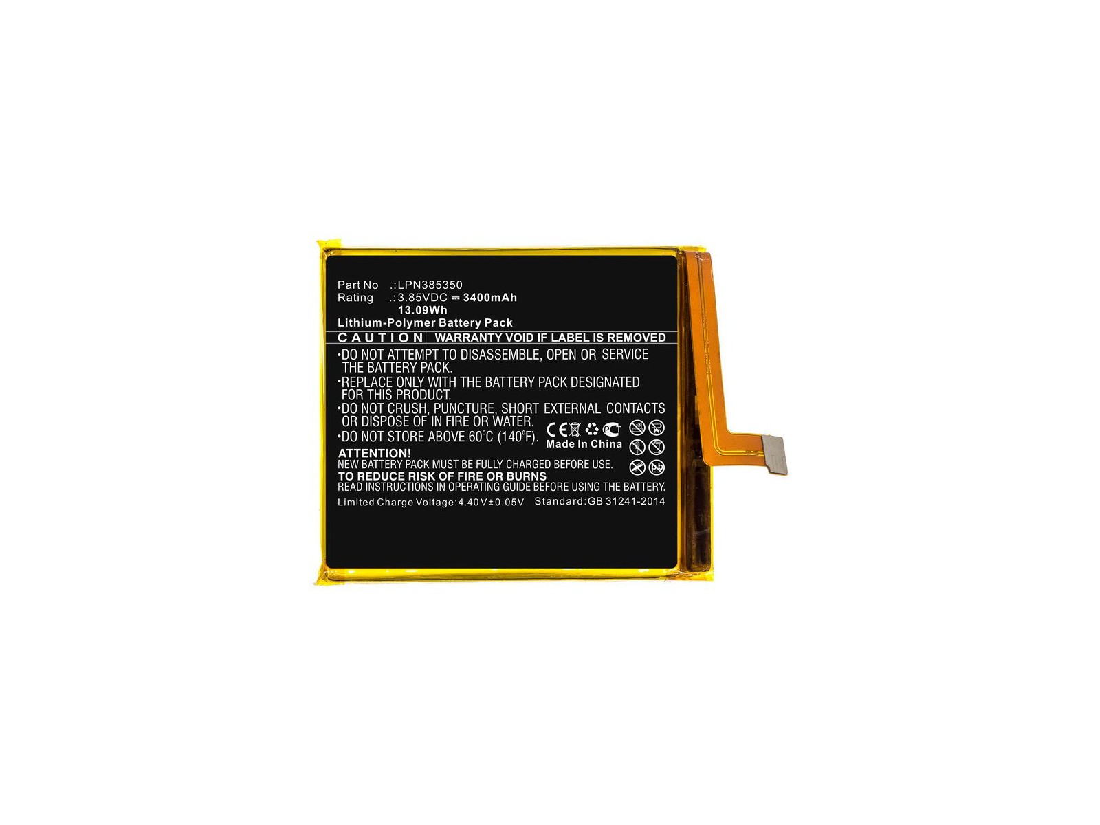 Mobile Battery for Crosscall 13.09Wh Li-Pol 3.85V 3400mAh Black for Crosscall Mobile, SmartPhone Action X3, Action-X3, Core X3, Core-X3, Trekker X3Discover the trusted quality of CoreParts with our Top Quality replacement Mobile Battery for Crosscall 13.09Wh Li-Pol 3.85V 3400mAh Black for Crosscall Mobile, SmartPhone Action X3, Action-X3, Core X3, Core-X3, Trekker X3. Engineered to deliver unmatched performance, this 13.09 Wh battery ensures that your device remains powered and ready for all your demands. Produced in China with rigorous quality control, each component meets high standards for reliability and longevity. Backed by a 12 Month(s) warranty, CoreParts products offer you confidence in every use, knowing you're investing in sustainability and cost efficiency. Our easy-to-install parts help you avoid costly replacements, empowering you to extend the life of your devices, reduce e-waste, and support a greener future. Choose CoreParts for high-quality, value-driven solutions that stand up to daily use and deliver ongoing reliability. LPN385350