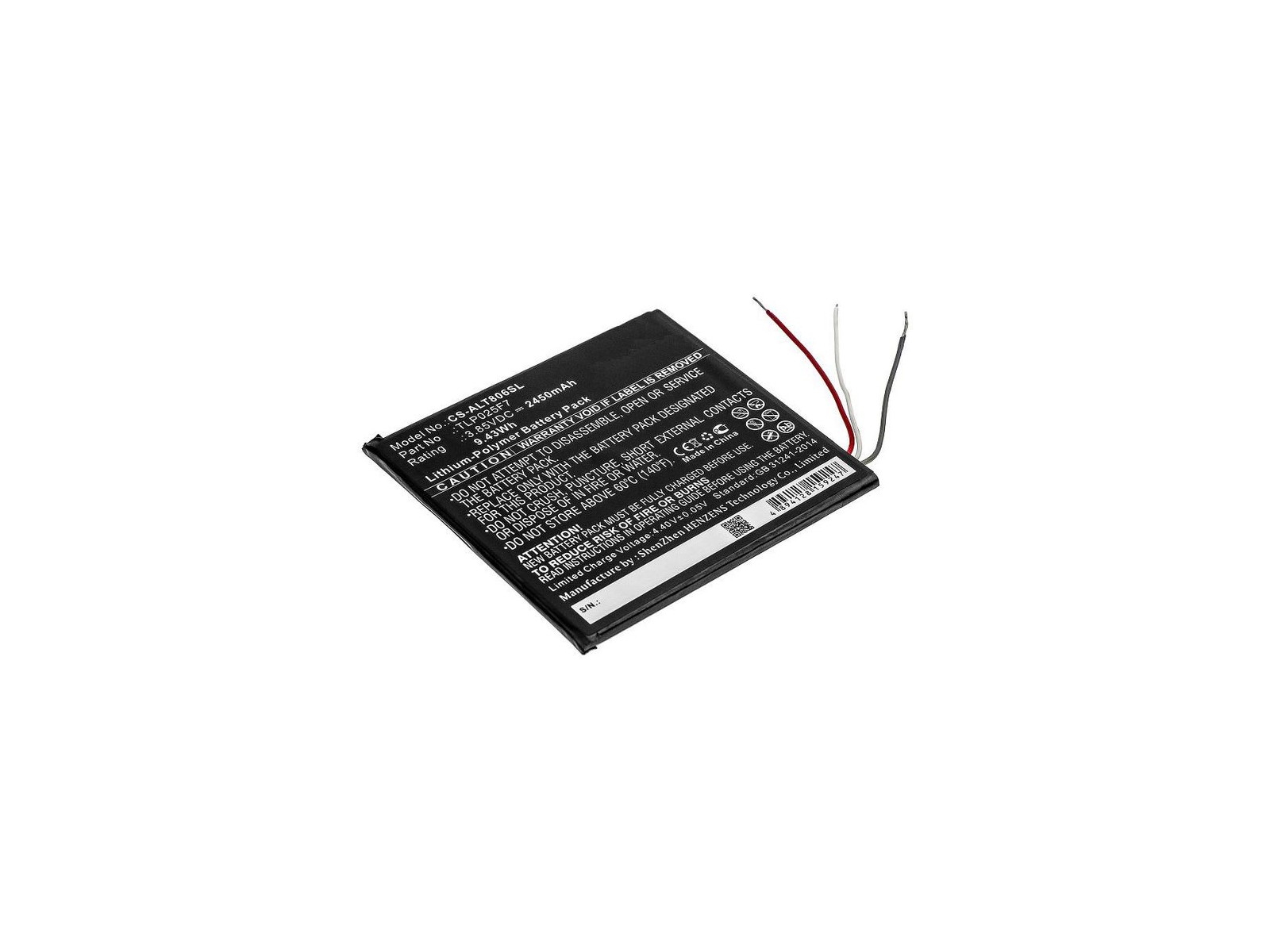 MBXTAB-BA006 CoreParts Battery for Alcatel Tablet 9.43Wh Li-Pol 3.85V 2450mAh Black for Alcatel Tablet 1T 7", OT-8068 TLP025F7