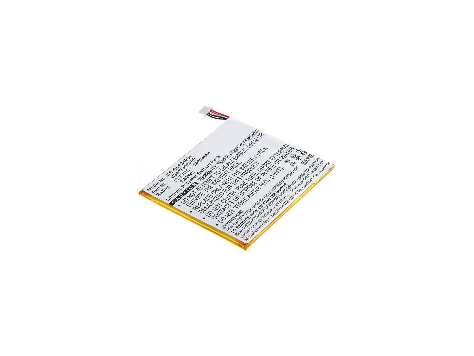 Battery for BLU Tablet 9.62Wh Li-Pol 3.7VV 2600mAh Black for BLU Tablet BT-E003, P240u, TouchBook G7, TouchBook G7 G7 7.0" 3G The growing demand for consumer electronic devices for home and leisure poses the challenge of upgrading, improving and enhancing existing devices. In CoreParts you will find a wide range of alternative batteries for Consumer Electronics, that matches the performance of your original device. All manufactured by High-end, certified and trusted suppliers. C948730300P