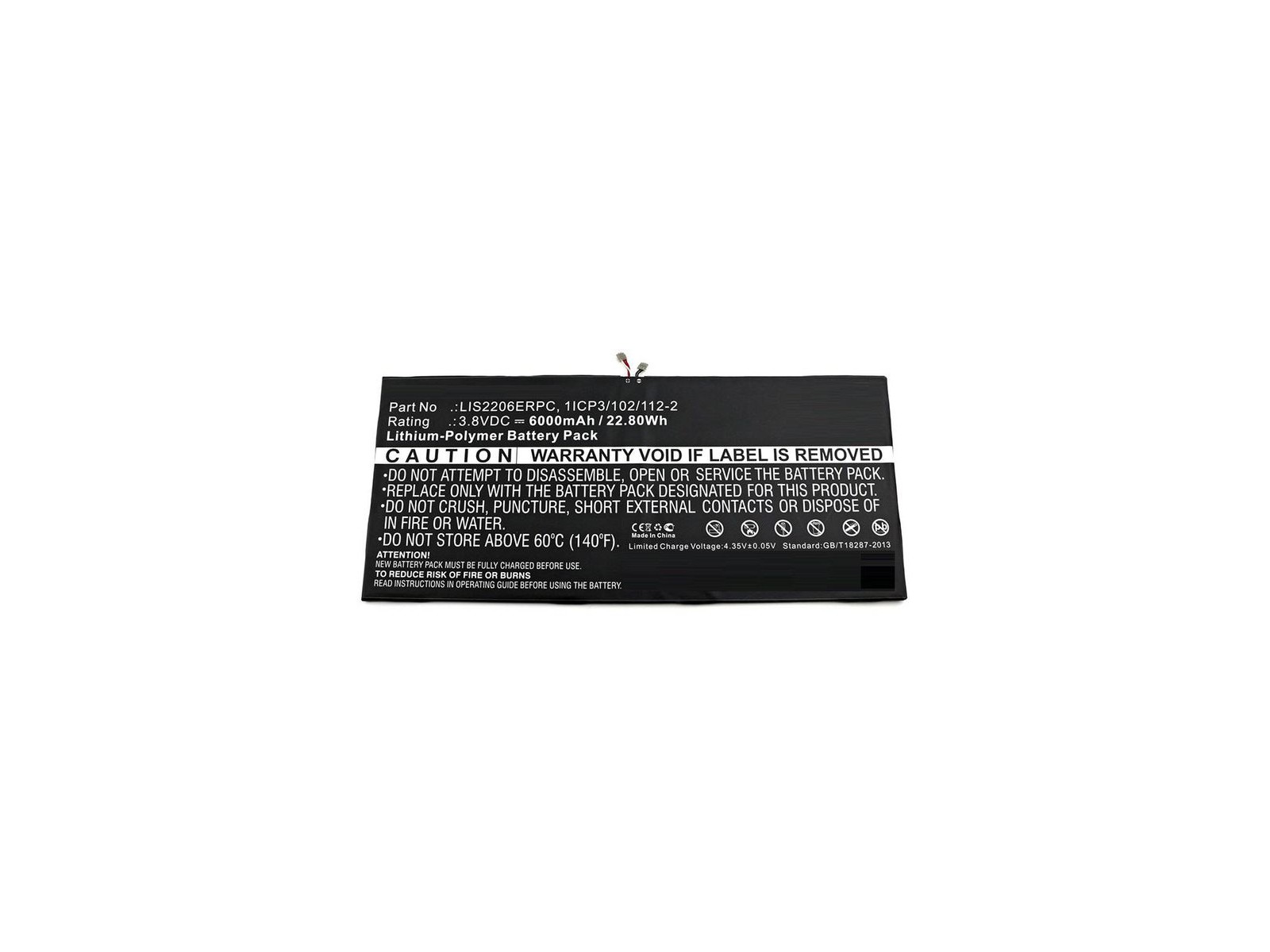 Battery for Sony Tablet 22.80Wh Li-Polymer 3.8V 6000mAh, Black for Castor, SGP511, SGP512, SGP521, SGP541, SGP551, SGP561, SOT21, Xperia Tablet Z2, Xperia Tablet Z2 TD-LTE Discover the trusted quality of CoreParts with our Top Quality replacement Battery for Sony Tablet 22.80Wh Li-Polymer 3.8V 6000mAh, Black for Castor, SGP511, SGP512, SGP521, SGP541, SGP551, SGP561, SOT21, Xperia Tablet Z2, Xperia Tablet Z2 TD-LTE. Engineered to deliver unmatched performance, this 22.8 Wh battery ensures that your device remains powered and ready for all your demands. Produced in China with rigorous quality control, each component meets high standards for reliability and longevity. Backed by a 12 Month(s) warranty, CoreParts products offer you confidence in every use, knowing you're investing in sustainability and cost efficiency. Our easy-to-install parts help you avoid costly replacements, empowering you to extend the life of your devices, reduce e-waste, and support a greener future. Choose CoreParts for high-quality, value-driven solutions that stand up to daily use and deliver ongoing reliability. 1277-3631.1B, 1ICP3/102/112-2, LIS2206ERPC