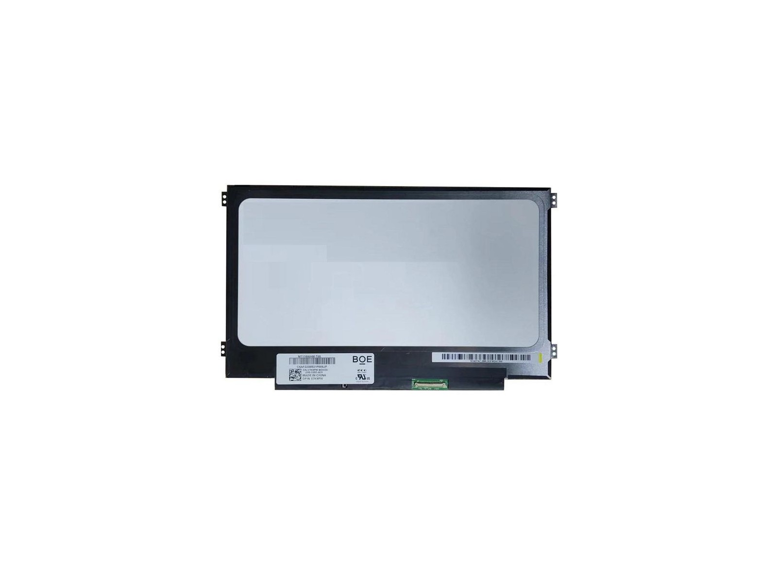 LCD HD opaco da 11,6" 1366x768 pannello originale con touch su cella connettore stretto inferiore destro eDP a 40 pin staffe laterali 4xCoreParts supporta il diritto di riparare il movimento e sceglie di offrire LCD originali in tutti i suoi pannelli LCD per laptop alternativi. I pannelli LCD per laptop CoreParts sono certificati e prodotti da fornitori di fascia alta e affidabili.
