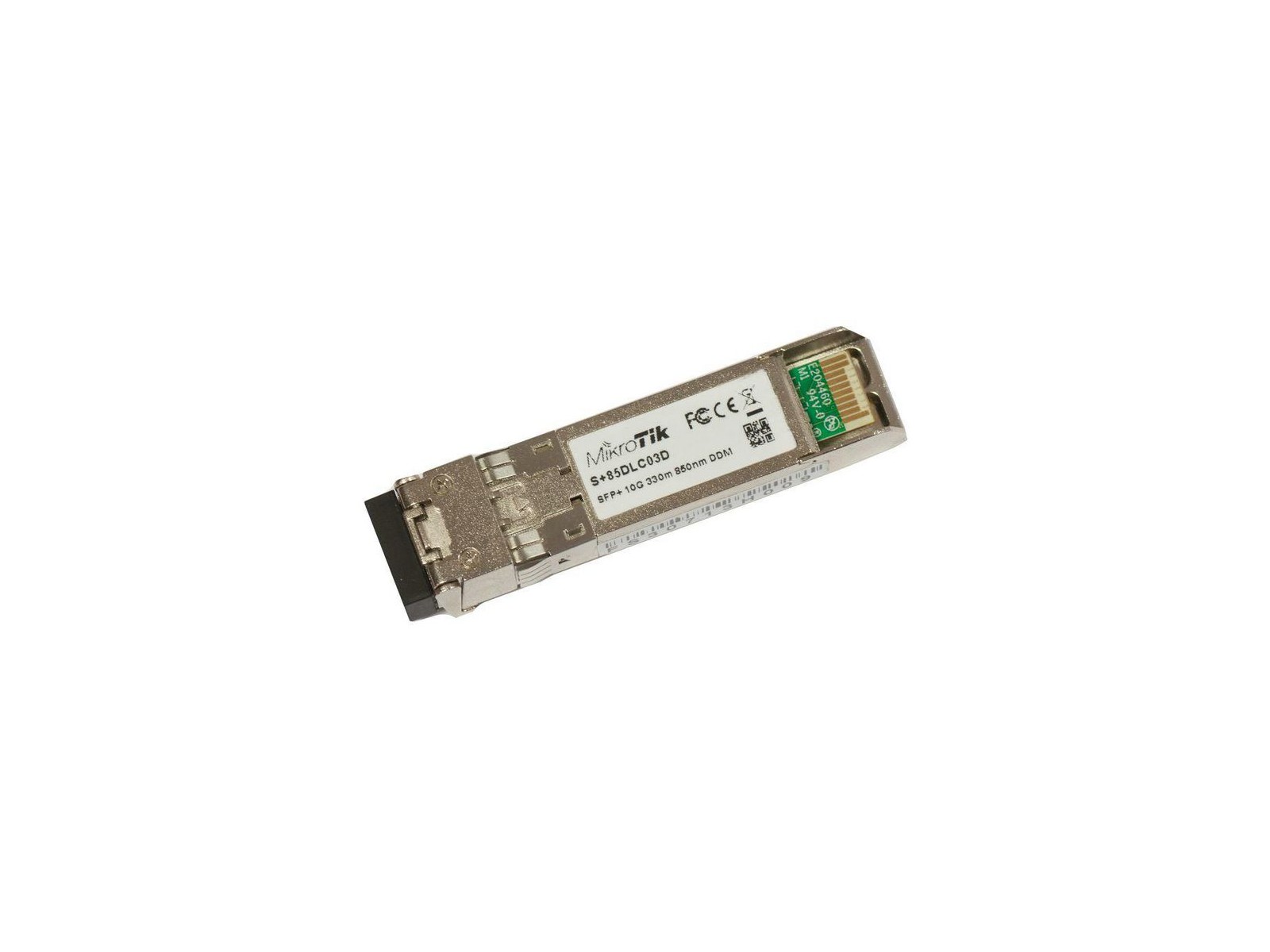 S+85DLC03D MikroTik 10 G, 300 m, MM, 850 nm, SFP+ 10087, 767869 10 G, 300 m, MM, 850 nm, SFP+ S+85DLC03D is a 10G SFP+ transceiver with a LC connector, 850nm, for up to 300 meter Multi Mode fiber connections Units are tested and compatible with CCR1036-8G-2S+ and CCR1036-8G-2S+EM. Units are compatible with non-MikroTik SFP devices as well.