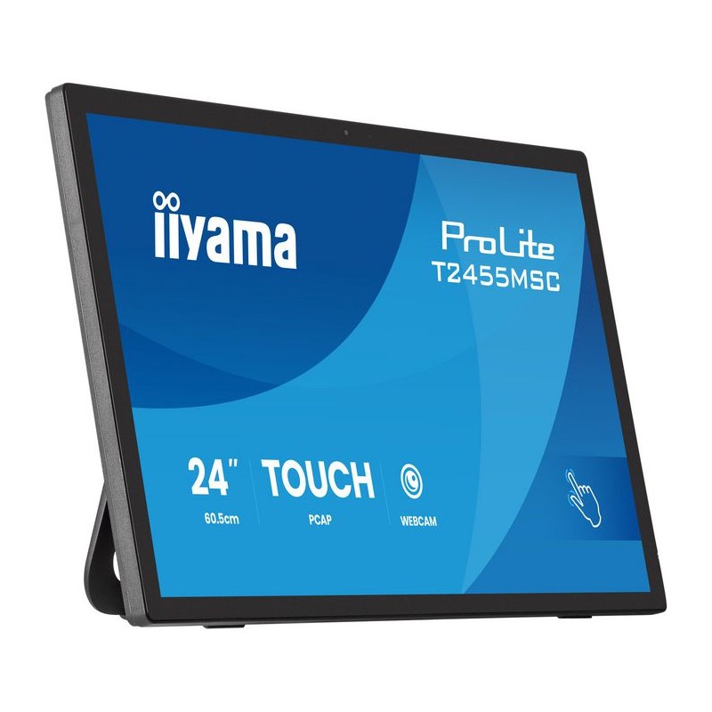 T2455MSC-B2 iiyama "27" PCAP 10P Touch" "27" PCAP 10P Touch" 24" IPS Optical Bonded PCAP 10P Touch, 1920x1080, Flat Bezel Free Glass Front, HDMI, DisplayPort, 360cd/m², USB Hub 2x 3.2, Speakers, Built-in Webcam & Microphone, Bookstand
