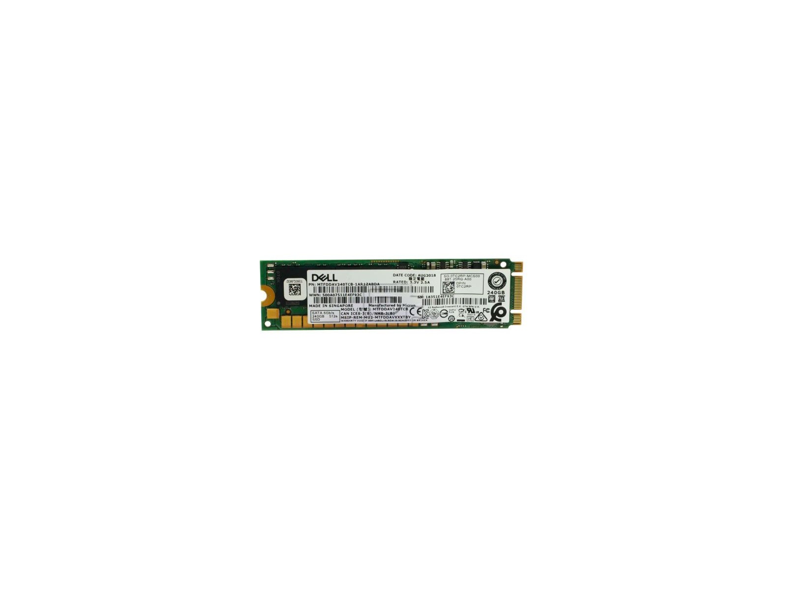 TC2RP-RFB Dell 240GB, SATA III 0DELL-WD19S-130W Server/workstation 240GB, SATA III Increase the storage capacity of your Dell™ System with 240GB Solid State Drive from Dell. It boasts a storage capacity of up to 240GB, enabling users to store large amounts of data. This drive delivers enhanced data transfer speed of up to 6Gbps.