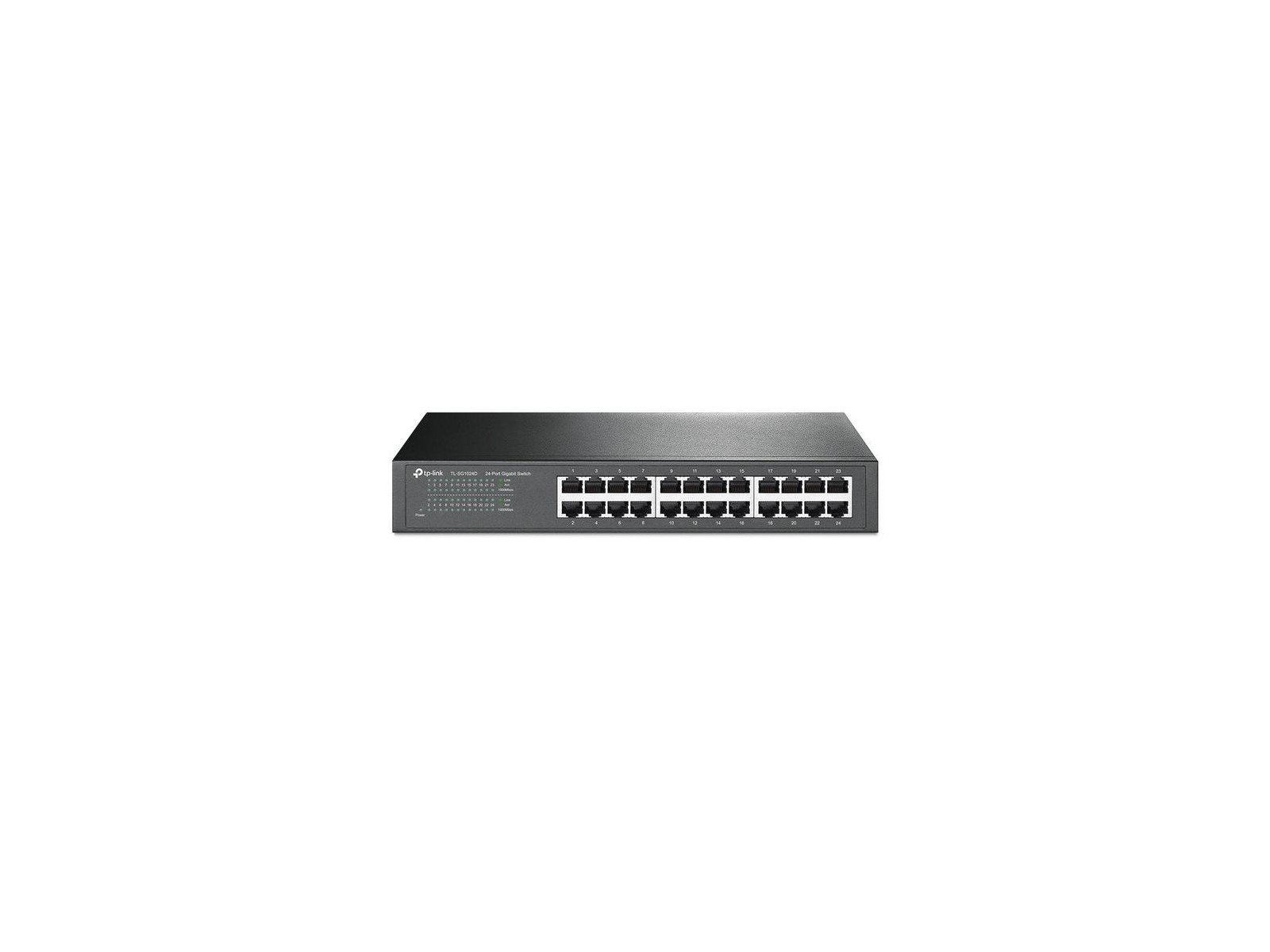 TL-SG1024D Omada 24-port, Gigabit Ethernet, Full-Duplex, Auto MDI/MDIX 768164 FCC, CE, RoHS 24-port, Gigabit Ethernet, Full-Duplex, Auto MDI/MDIX The TL-SG1024D 24-Port Gigabit desktop/rack-mount switch provides an easy way to make the transition to Gigabit Ethernet. All 24 ports support auto MDI/MDIX, no need to worry about the cable type, simply plug and play. Moreover, with the innovative energy-efficient technology, the TL-SG1024D can save up to 20%* of the power consumption, making it an eco-friendly solution for your business network. Gigabit Switch Featured with 24 10/100/1000Mbps ports, TL-SG1024D greatly expands your network capacity, enabling instant large files transferring. So,power users in the home, office, workgroup, or creative production environment can now move large, bandwidth-intensive files faster. Transfer - graphics, CGI, CAD, or multimedia files across the network instantly. GO GREEN WITH YOUR ETHERNET You now have the choice to go green when upgrading to a gigabit network! This new generation TL-SG1024D 24-Port Gigabit desktop/rack-mount Switch features the latest innovative energy-efficient technologies that can greatly expand your network capacity with much less power. It automatically adjusts power consumption according to the link status and cable length to limit the carbon footprint of your network. Power down Idle Ports When a computer or network equipment is off, the corresponding port of a traditional switch will continue to consume considerable amounts of power. The TL-SG1024D can automatically detect the link status of each port and reduce the power consumption of ports that are idle. Power Budget According to Cable Length Ideally, shorter cables would use less power because of less power degradation over their length, this is not the case with most devices as they will use the same amount of power across the cable regardless of whether it is 10 or 50 meters in length. The TL-SG1024D analyzes the length of the Ethernet cable connected and adjusts the power usage accordingly, rather than keeping the power consumption in a conventional solution. Easy to Use The auto features of this gigabit switch make installation plug and play and hassle-free. No configuring is required. Auto MDI/MDIX eliminates the need for crossover cables. Auto-negotiation on each port senses the link speed of a network device (either 10, 100 Mbps or 1000 Mbps) and intelligently adjusts for compatibility and optimal performance. Features - Innovative energy-efficient technology saves power up to 20%; - Supports IEEE 802.3x flow control for Full Duplex mode and backpressure for Half Duplex mode; - Non-blocking switching architecture that forwards and filters packets at full wire-speed for maximum throughput; - 48Gbps Switching Capacity; - 10K Jumbo frame improves performance of large data transfers; - Auto-MDI/MDIX eliminates the need for crossover cables; - Supports MAC address auto-learning and auto-aging; - Store and forward Switching scheme; - Auto-negotiation ports provide smart integration between 10Mbps, 100Mbps and 1000Mbps hardware; - Desktop and Rack-mountable design; - Plug and Play design simplifies installation.