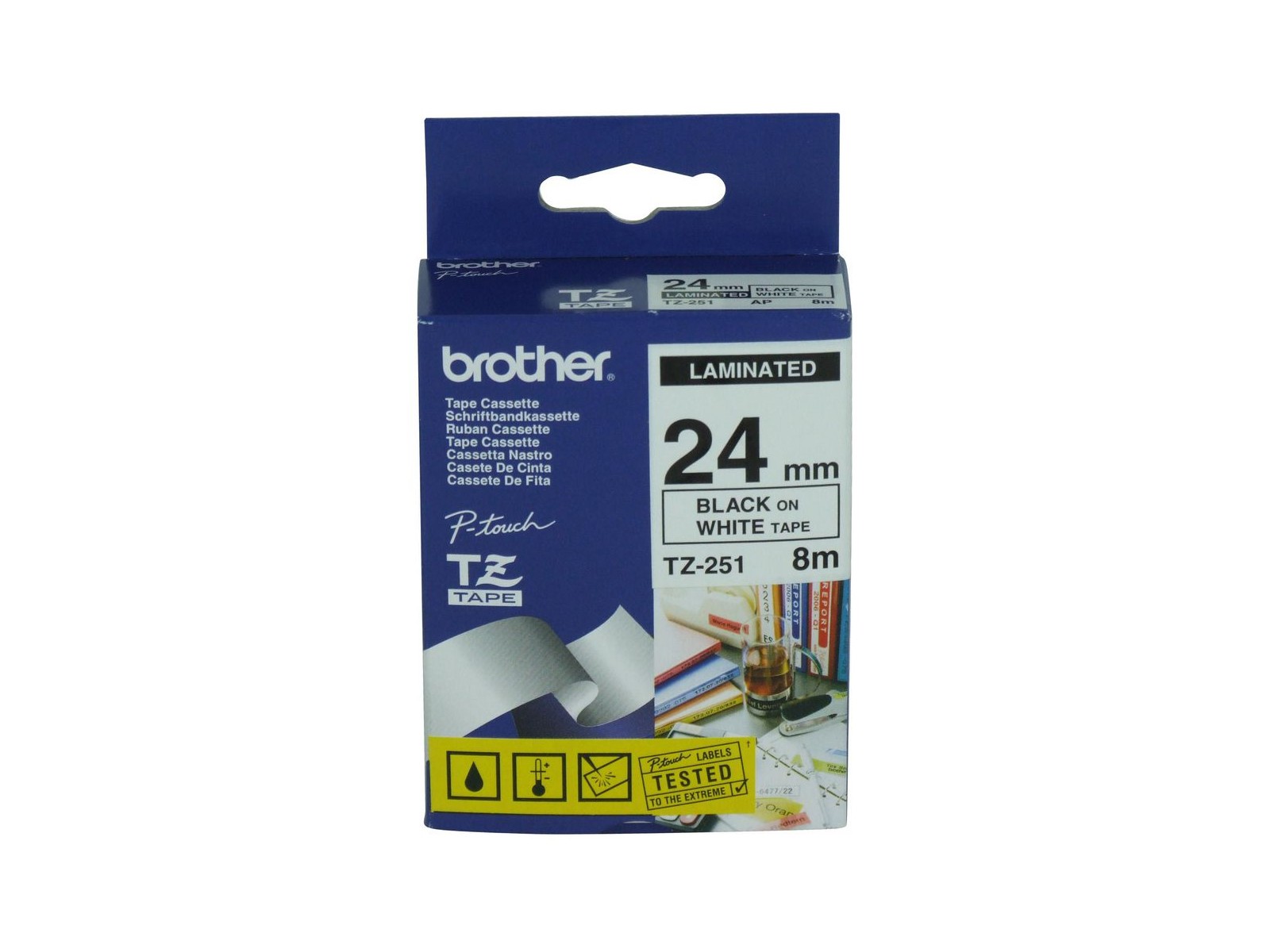 TZ-251 TZ-251 Brother Black on White Gloss Laminated Tape, 24mm BROTZE631 Black Features DSE