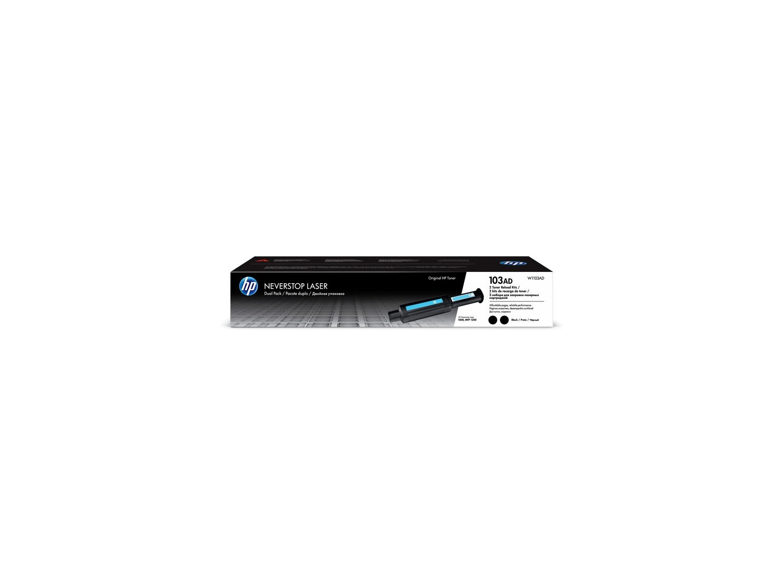 Kit di ricarica toner laser Neverstop originale nero a doppia confezione 103AD Ideale per micro e piccoli uffici che desiderano stampare con la tecnologia laser HP a un prezzo accessibile. Stampa migliaia di pagine laser di alta qualit? senza cartuccia con l'esclusivo pulito e facile da usare sistema di ricarica toner HP. Ottieni altre 2.500 pagine nel secondo kit di ricarica toner.[1]