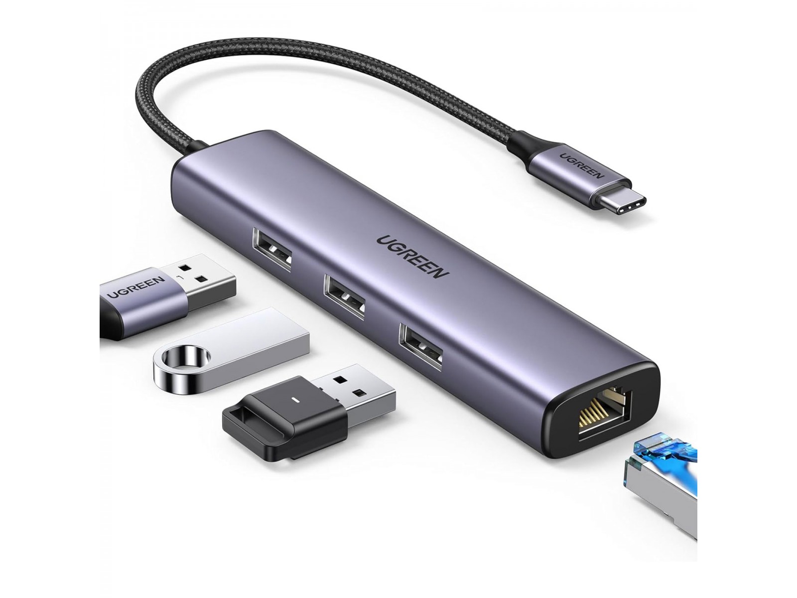 UGREEN Hub USB Type-C, 4 in 1, Ethernet RJ45 Gigabit, 3 x USB 3.2 Gen1, 60600