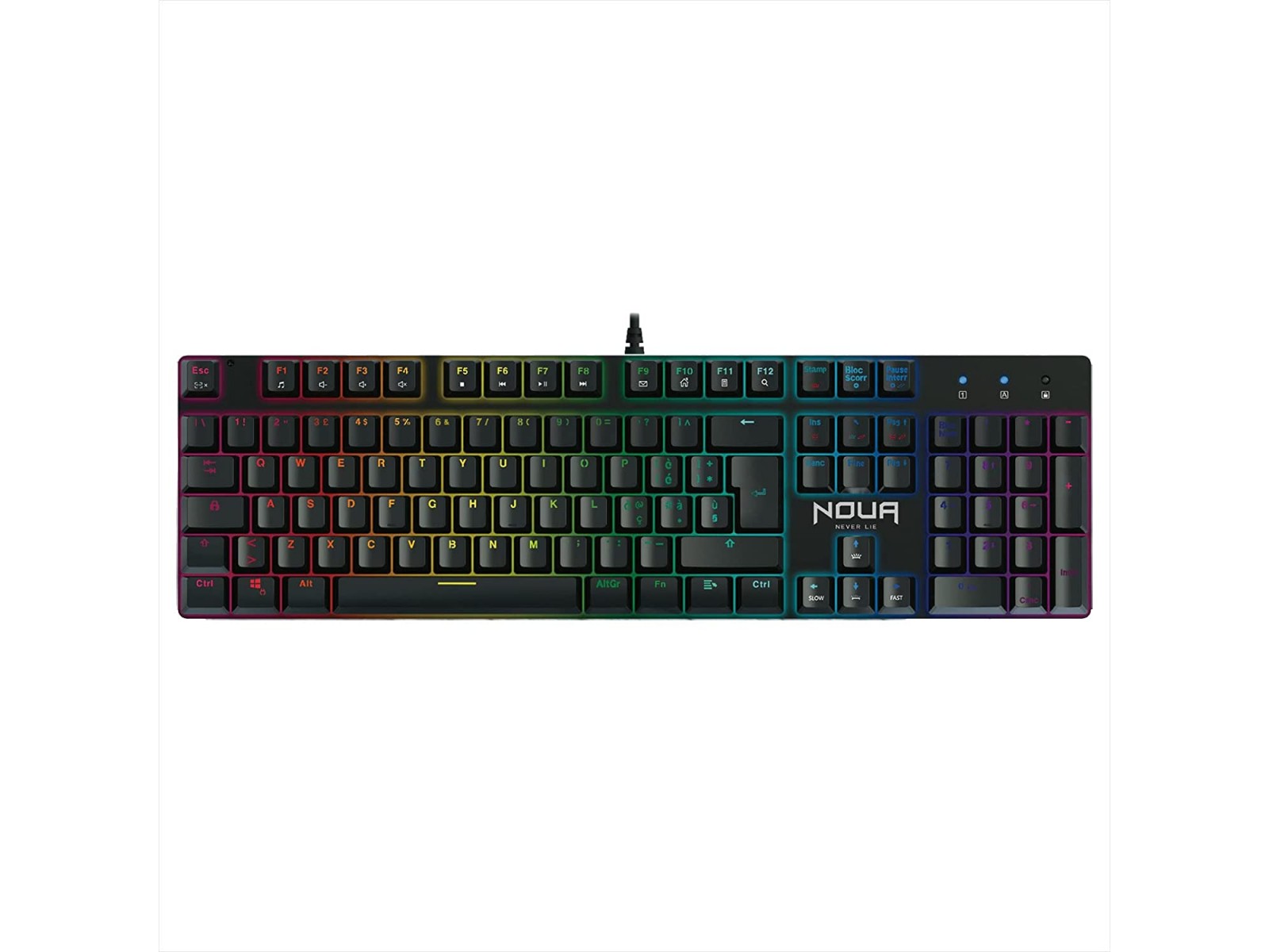 Tastiera gaming meccanica professionale anti-ghosting - Tutti i 105 tasti sono privi di conflitti per le massime prestazioni di gioco. 12 tasti multimediali dedicati, antiscivolo, connettore USB; tasti FN controllano volume, la traccia, riproducono, mettono in pausa, silenziano, attivano l'illuminazione e la modalità gaming