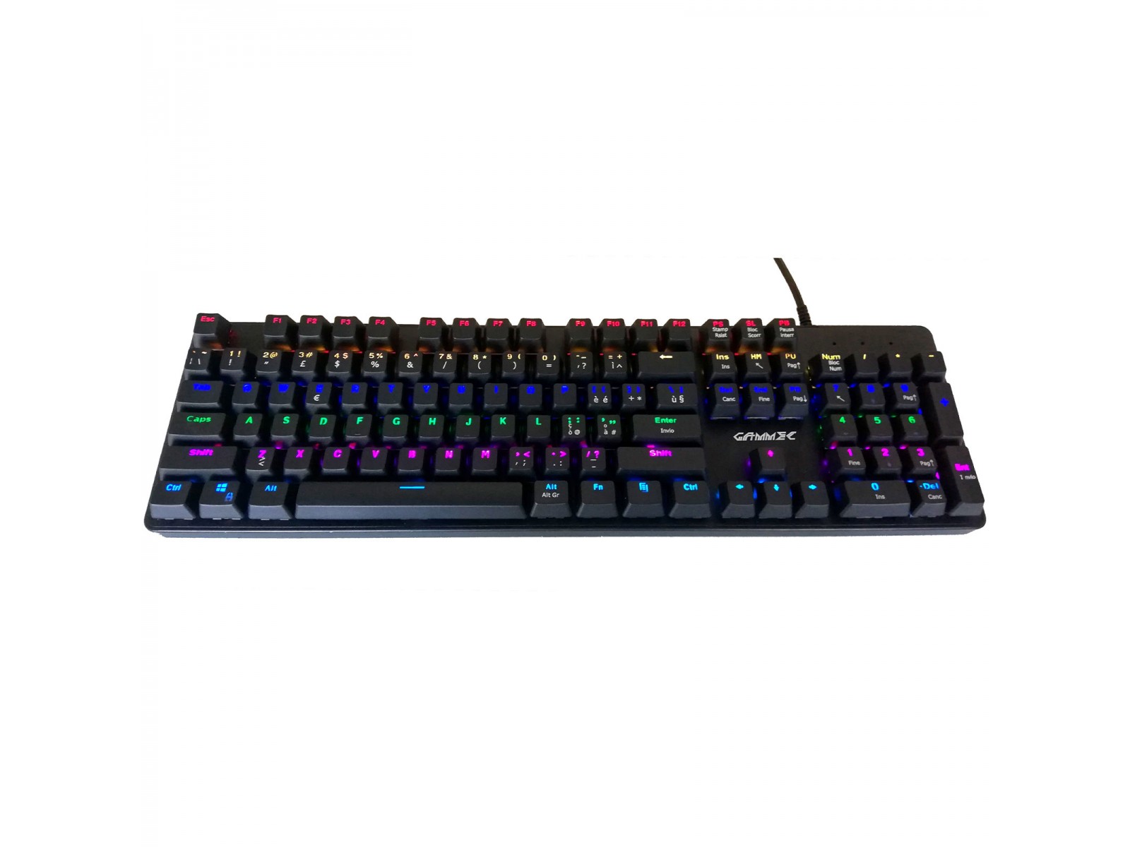 La Gammec VEGA e' una tastiera meccanica, con singoli LED con diversi colori per file, programmabile. La VEGA dispone di 8 profili on/off gia' programmati e altri 2 programmabili on/off, e ha ben 20 diversi effetti di illuminazione backlight. Possiede inoltre funzioni gaming e multimediali e settaggi separati di backlight per intensita'.E' disponibile in 2 versioni con switches blue (con click) e rossi (senza click e rapidi). E' disponibile anche la versione a led RGB.